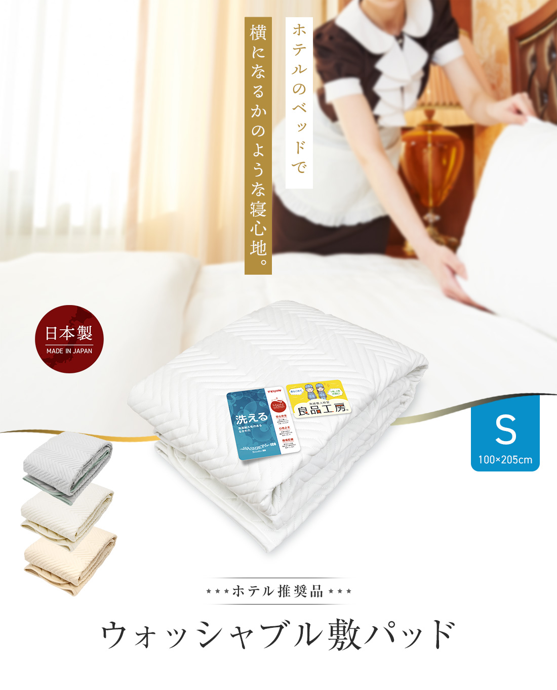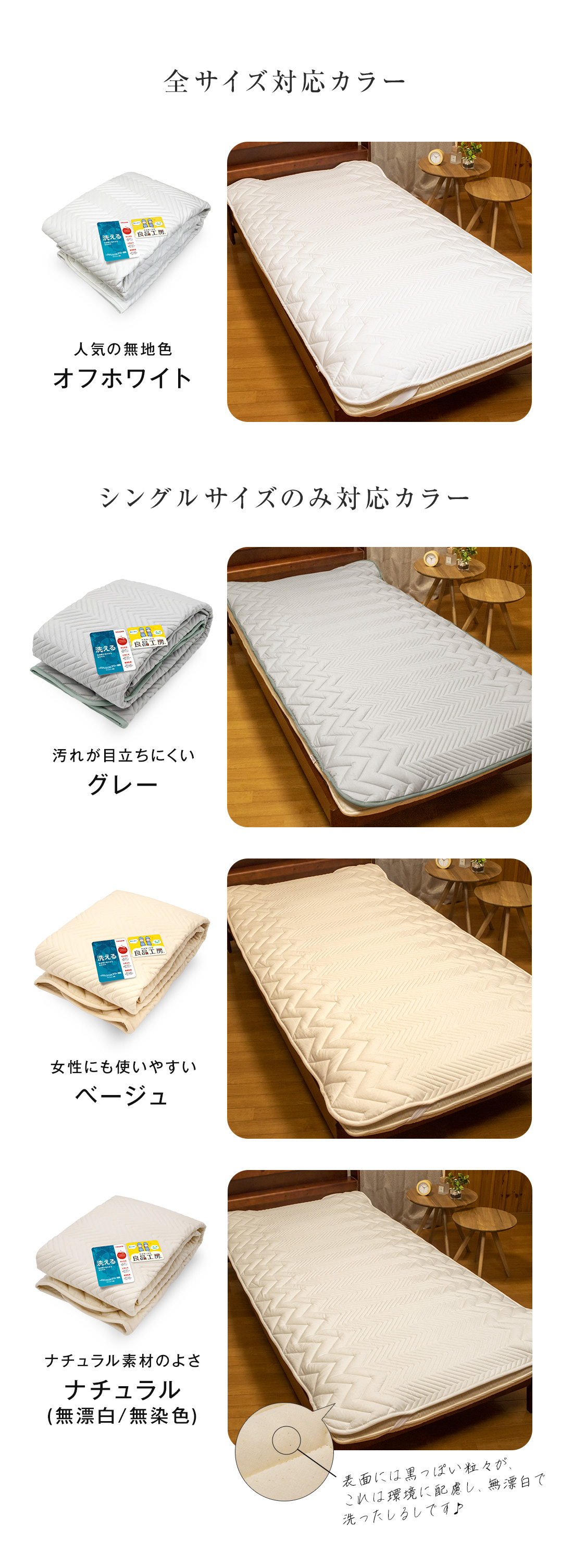 ・お手持ちのボックスシーツと併用すればベッドパッドとしてもお使いいただけます。