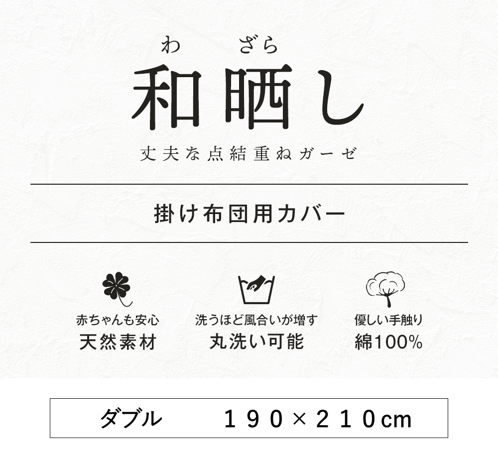 和晒し 和ざらし ガーゼ 96時間熟成 高衛生 掛けふとん用 掛布団用 掛けカバー 点結重ね ダブル